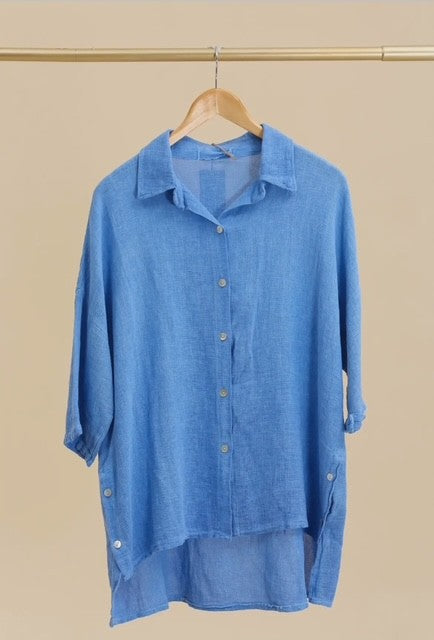 Skjorten er fremstillet i Italien af en blød blanding af 50% hør og 50% bomuld, hvilket gør den behagelig at have på og perfekt til både hverdag og ferie.