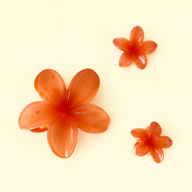 Smukt hårspænde formet som en blomst i orange. Perfekt til at give frisuren et friskt og feminint udtryk – ideelt til både hverdag og fest.