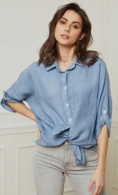 Denne model er One Size, hvilket gør den fleksibel og let at style på mange måder. Det bløde hørstof lader huden ånde og giver et afslappet, men sofistikeret look, der fungerer hele året rundt.