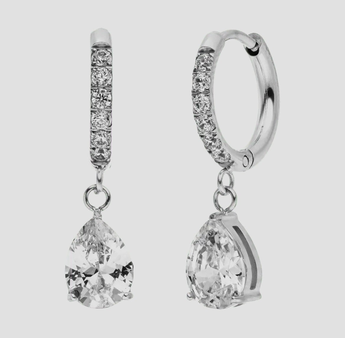 Tear Drop Øreringe – Sølvlook m. Zirkonia, pris er for en, ikke et par.